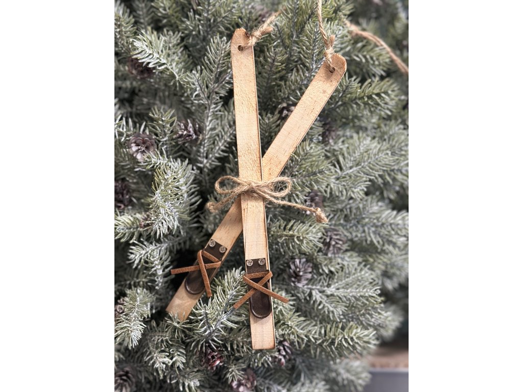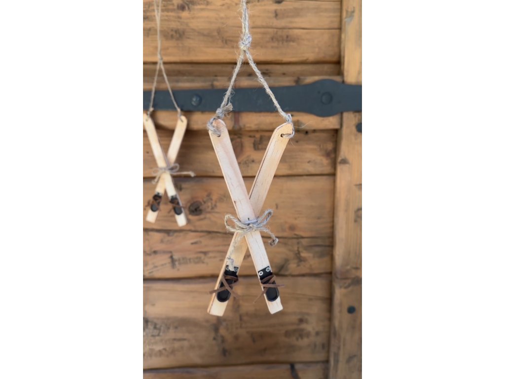 Okouzlující dřevěná přízdoba lyží s vázáním dodá krásný rustikální šmrnc vašim Vánocům. Hodí se na věnce, vánoční stromeček a díky své velikosti 17,5 cm x 7 cm ji nikdo nepřehlédne.