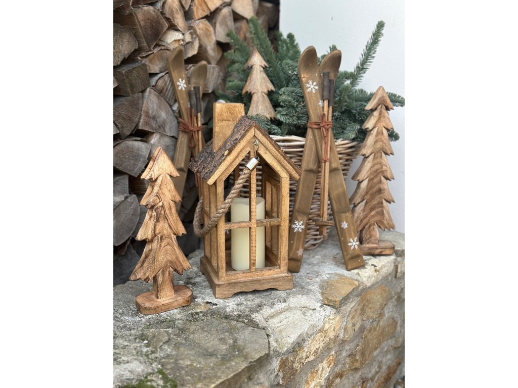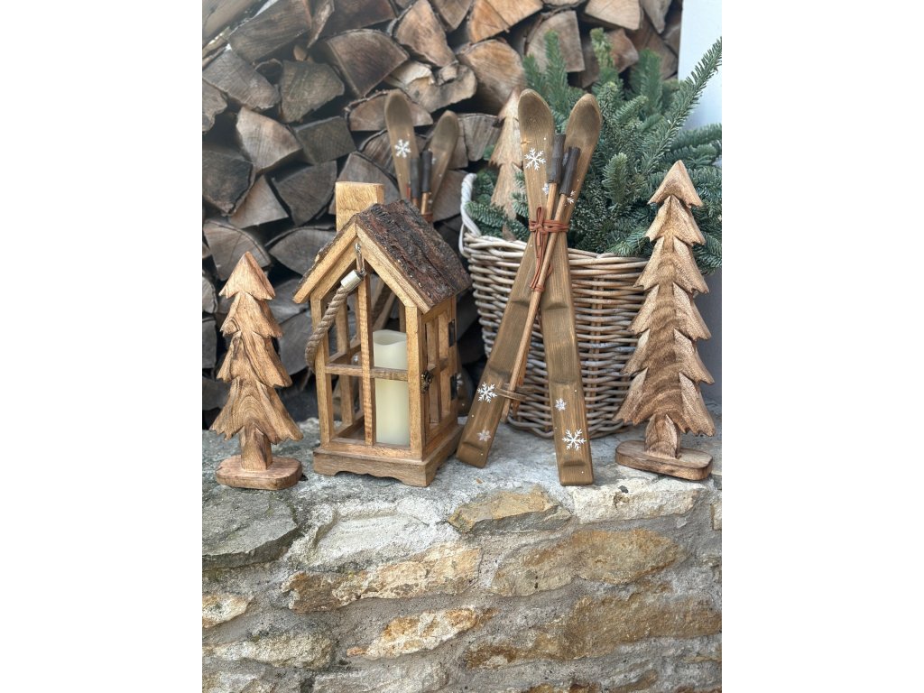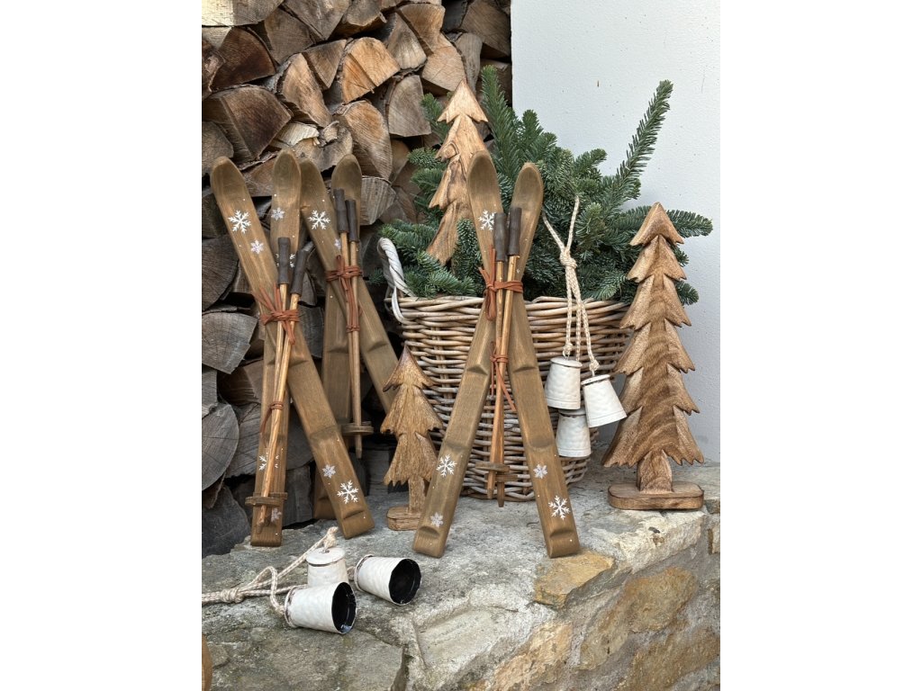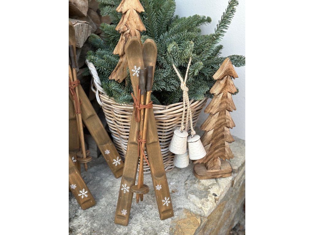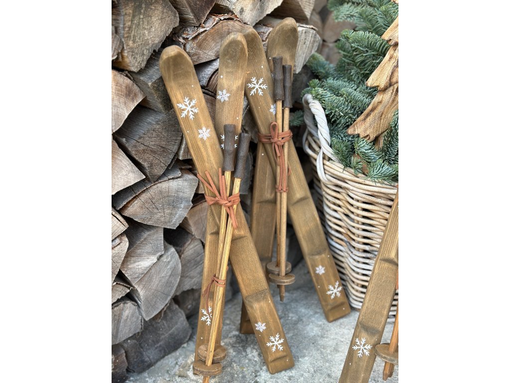 Nádherné dřevěné lyže dodají zimní atmosféru každému vstupu do domu. Krásné budou i v interiéru, např. na stěně nebo opřené o stěnu u vánočního aranžmá. Jsou vysoké 51,5 cm a jsou v sadě s hůlkami. Krásně jim to ladí s dekoracemi z mangového dřeva, např. s lucernami, chaloupkou, stromečky.