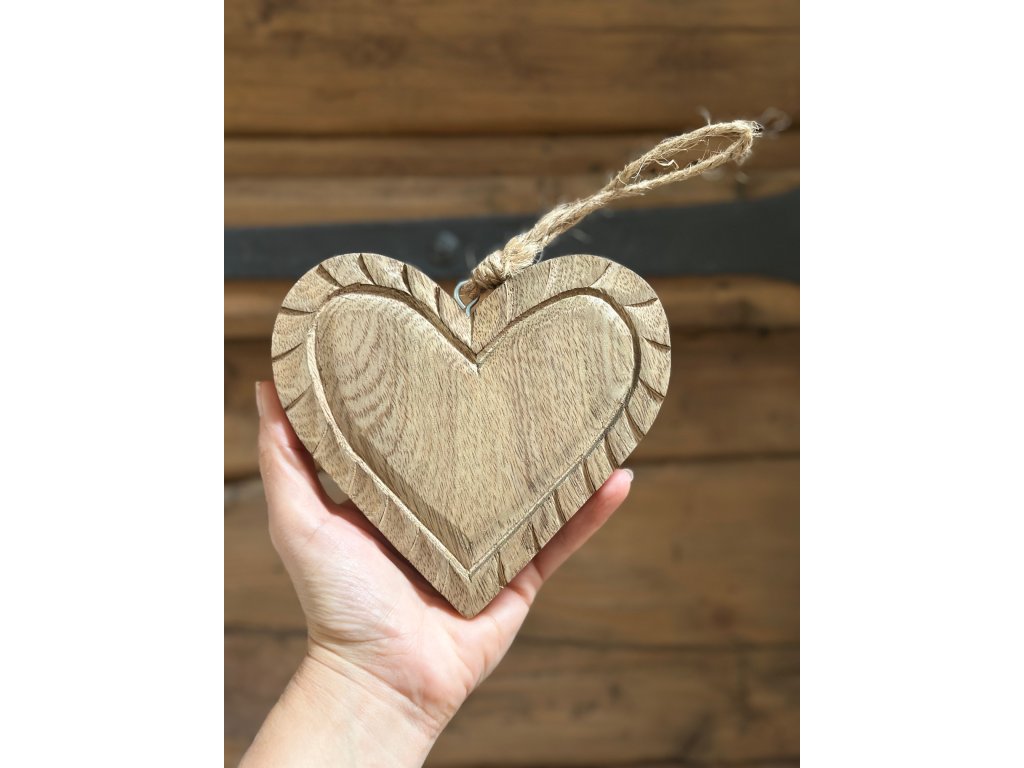 Krásné velké srdce z masivního dřeva je okouzlující dekorací samo o sobě. Můžete si ho pověsit kamkoliv - na zeď, úchytku nábytku, do většího věnce nebo darovat svým blízkým. rozměry jsou: 14x15 cm.