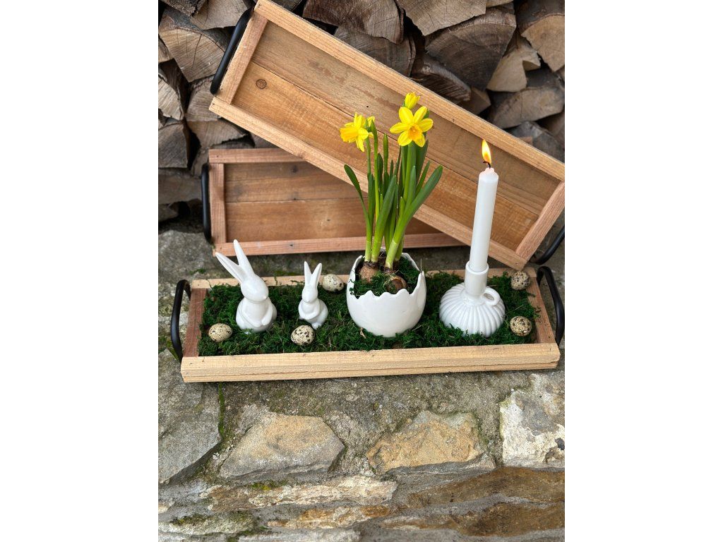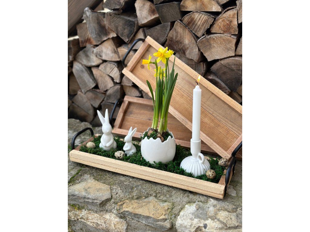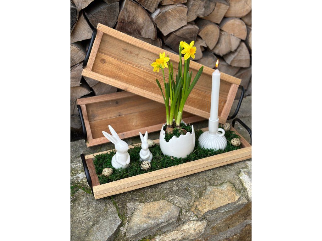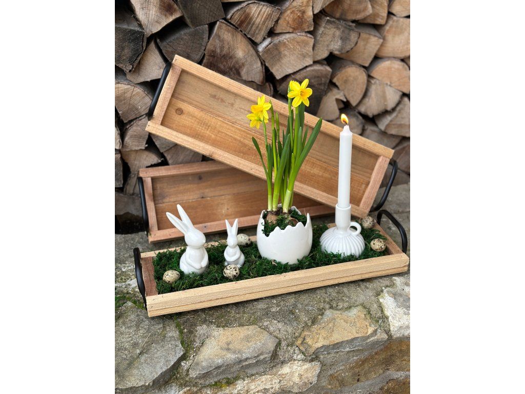 Víceúčelový dřevěný podnos s úchytkami najde využití jak pro dekorace tak pro servírování. Díky úchytkám budete moc svá aranžmá snadno přenášet. Podnos se hodí umístit na parapety, komody nebo jídelní stoly. Rozměry: 49 cm x 16 cm. Podnos 2. jakosti má drobné povrchové vady, ale nijak nevadí jeho využití.