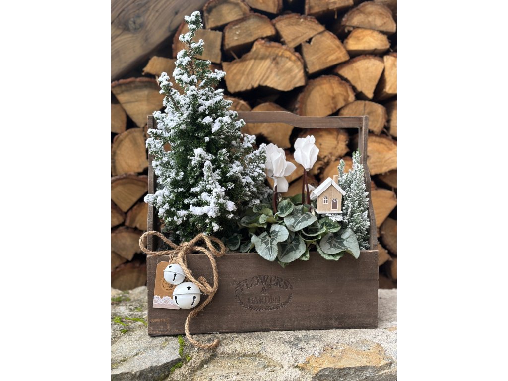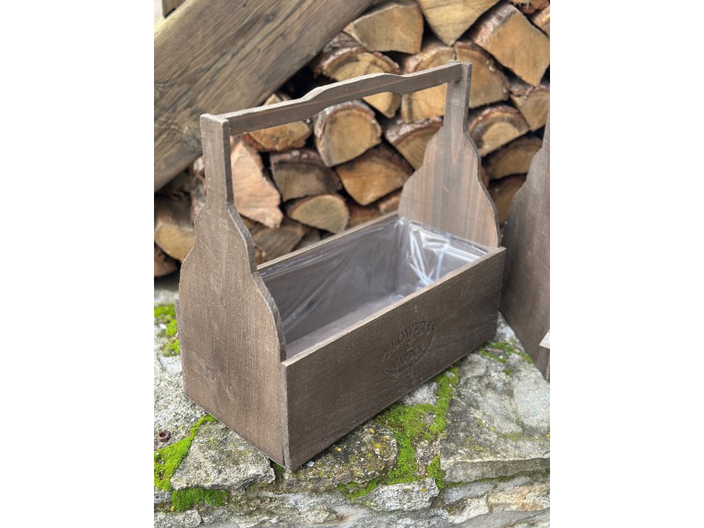 Dřevěný truhlík je ideální pro krásná aranžmá, uvnitř je opatřen igelitem, tudíž do něj můžete sesazovat květiny nebo udělat vypichované aranžmá do aranžovací hmoty. Rozměry jsou 40x40x20 cm.