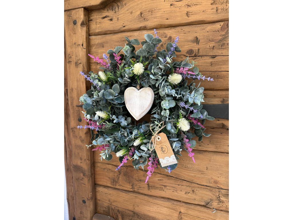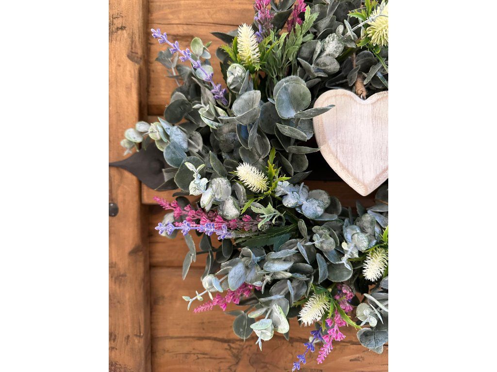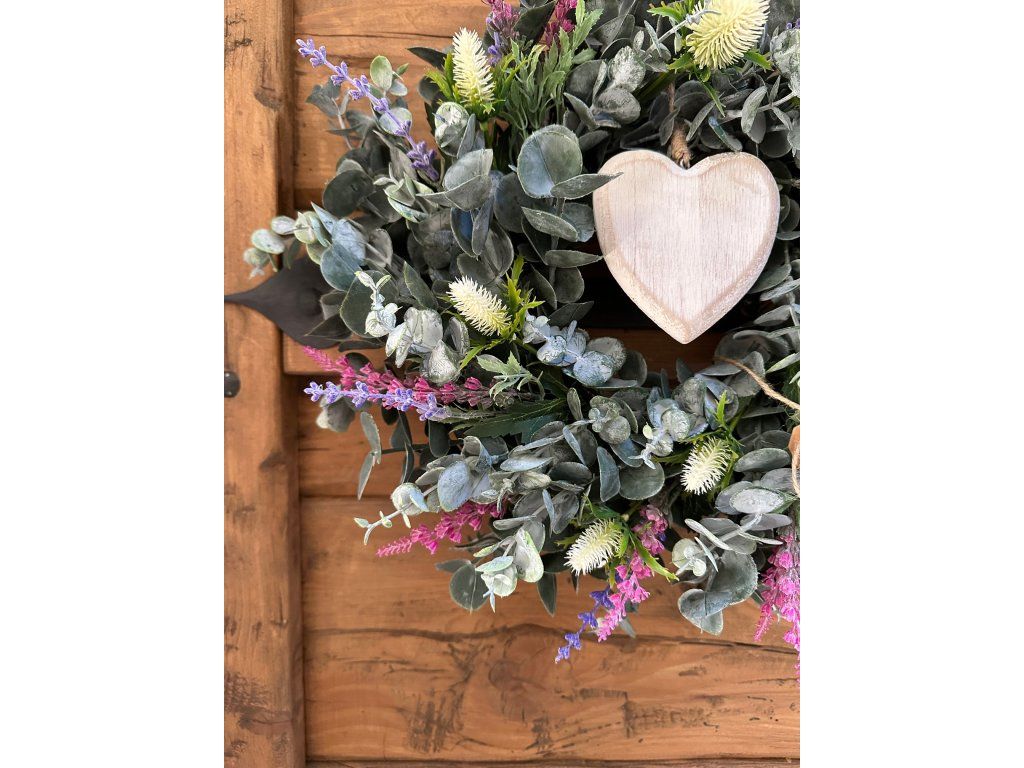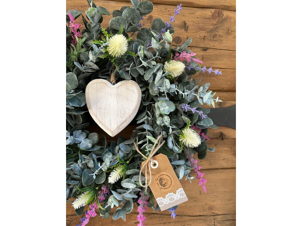 Eukalyptový věnec se srdíčkem (umělý) 40 cm