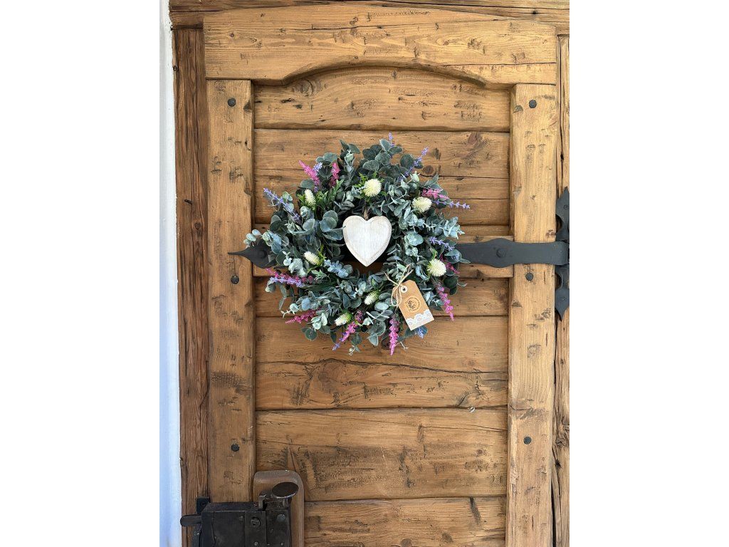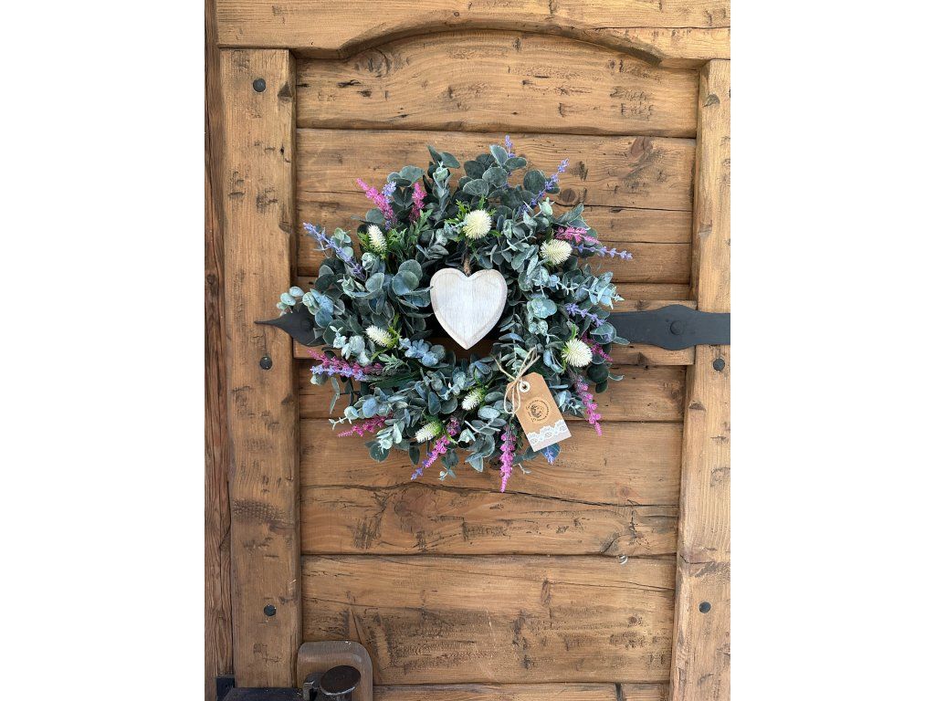 › Z MOJÍ DÍLNY › Eukalyptový věnec se srdíčkem (umělý) 40 cm