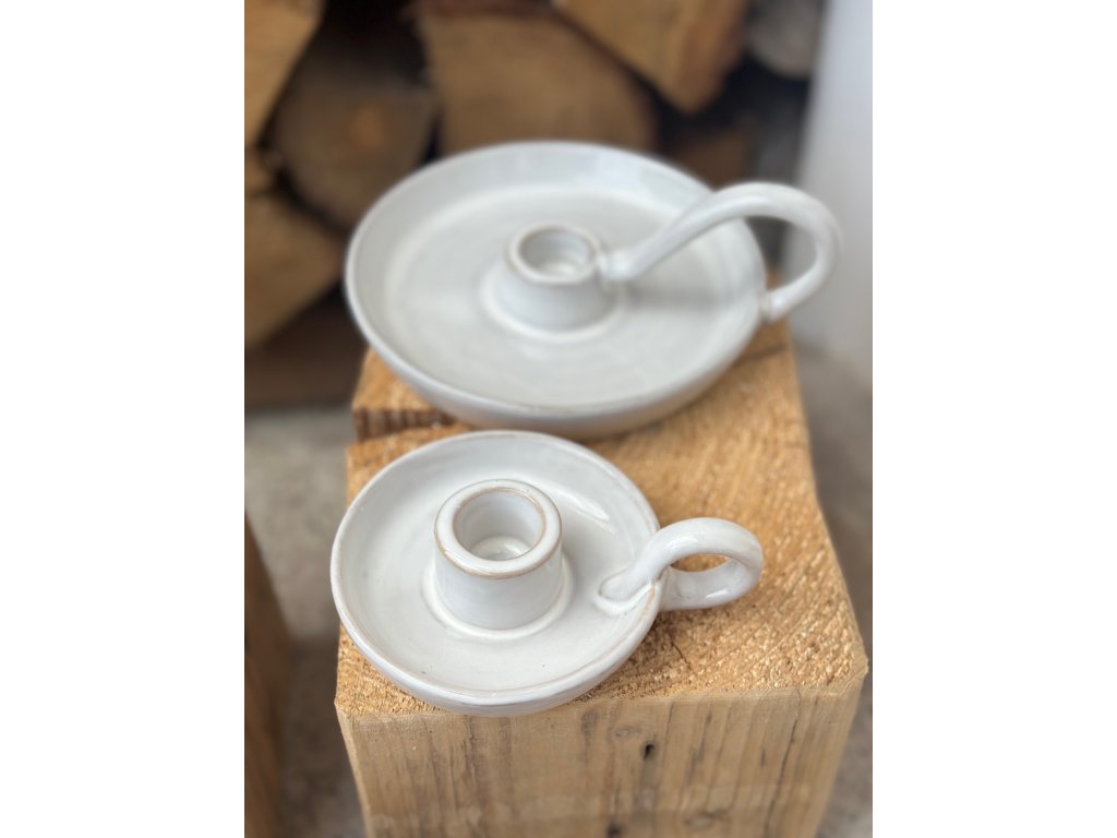 Plamínek svíčky neodmyslitelně patří k teplu domova a příjemné atmosféře ve Vašich domovech. Tento svícen na úzkou svíčku se hodí do všech interiérů, díky praktickému oušku se snadno přenáší a v nabídce ho mám ve dvou velikostech. Skvěle do nich pasuje úzká svíčka z mojí nabídky. Průměr většího svícnu je 16,3 cm a menšího 12 cm.