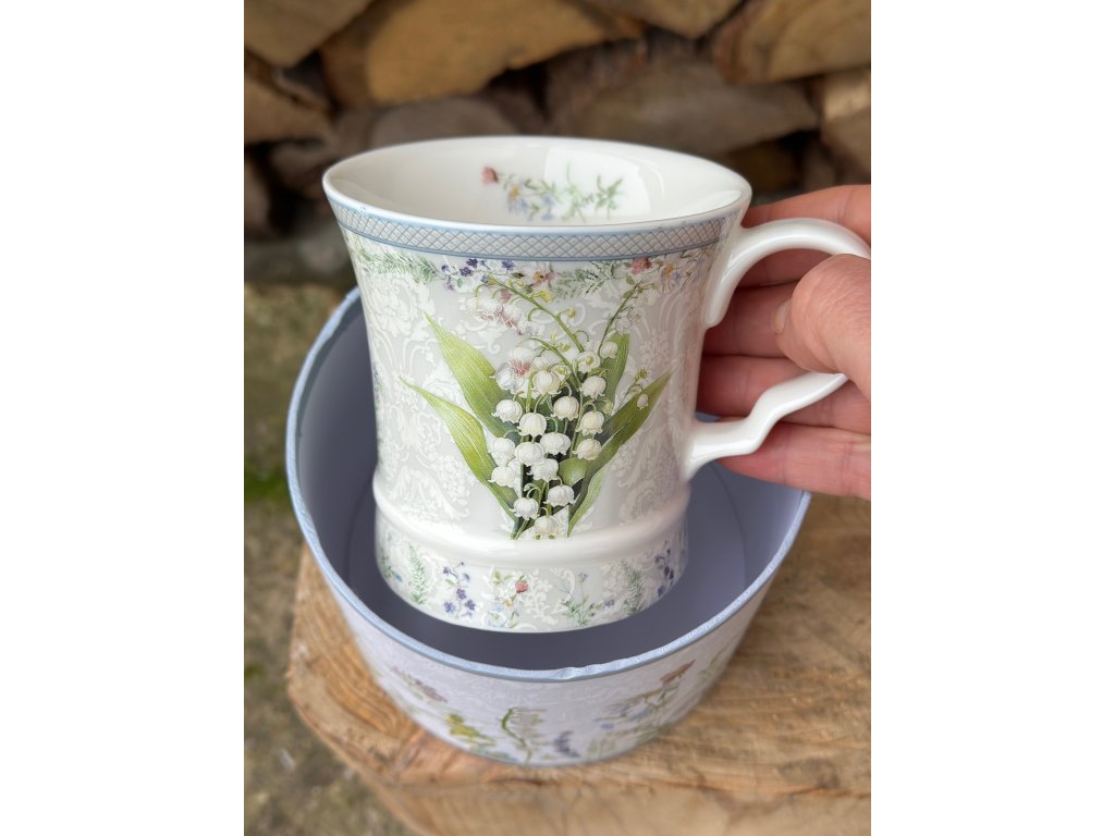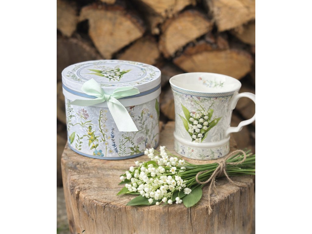Překrásný porcelánový hrníček v dárkové krabičce s okouzlujícím motivem konvalinek potěší každého milovníka květin.