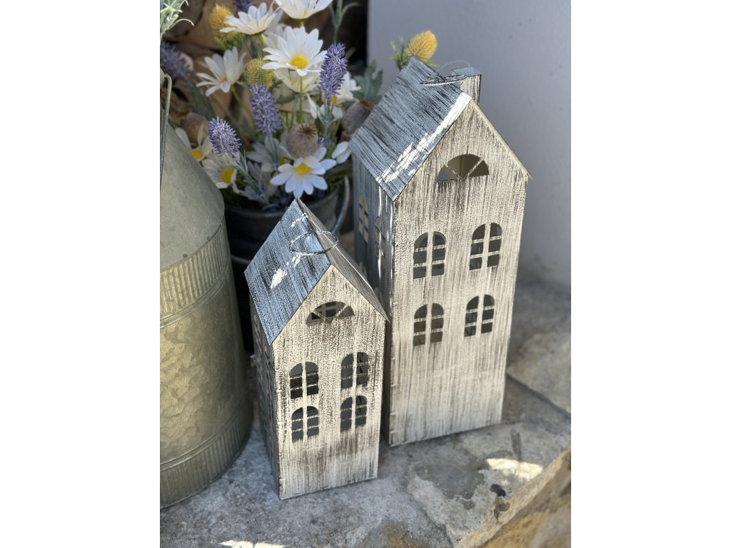 Plechové domečky na svíčku jsou krásnou celoroční dekorací, která zútulní každý interiér, ale i např. vstup do domu. Hodí se buď k dalším šedým kovovým dekoracím nebo k bílé keramice či dřevu. Jsou k dostání nově ve třech velikostech. Nejvíce jim to sluší ve skupince. Velmi pěkně vypadají např. větší u vstupu a menší v interiéru. Malý je vysoký 19 cm, střední 29 cm a velký 38 cm.