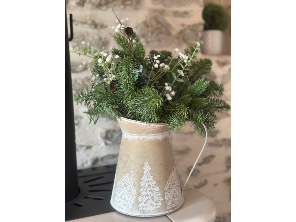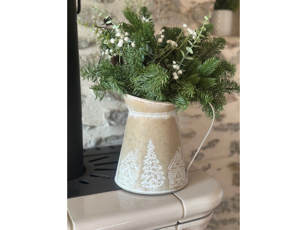 Tento džbánek je přesně ten typ dekorace, kterému nelze odolat. Je to originální kousek, který vnese do vašeho domova kouzlo zimní pohody. Plechová bandaska/džbán je zdobený jemným motivem zasněžené chaloupky a lesa, takže skvěle doplní vánoční i zimní výzdobu.