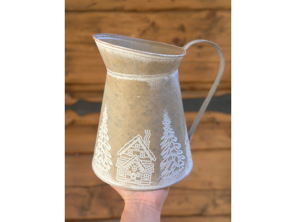 › DEKORACE › Plechový džbán s motivem chaloupky - světlý