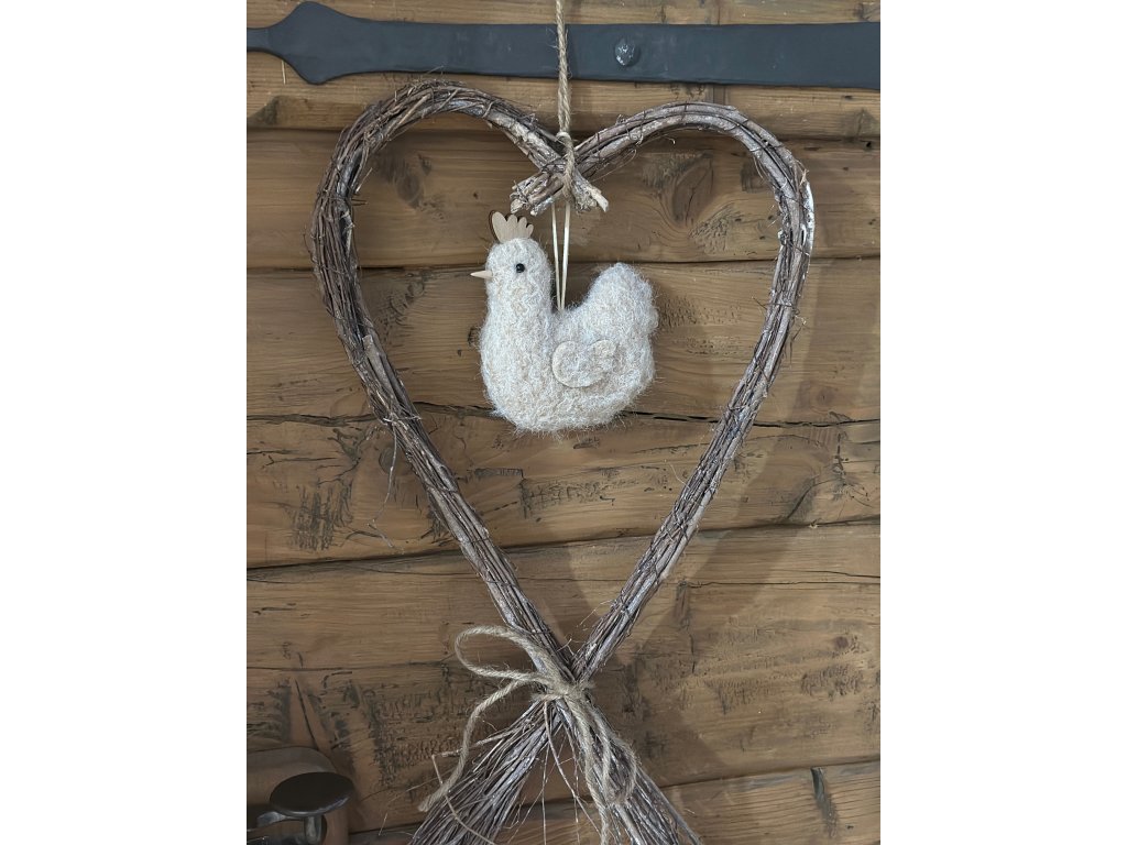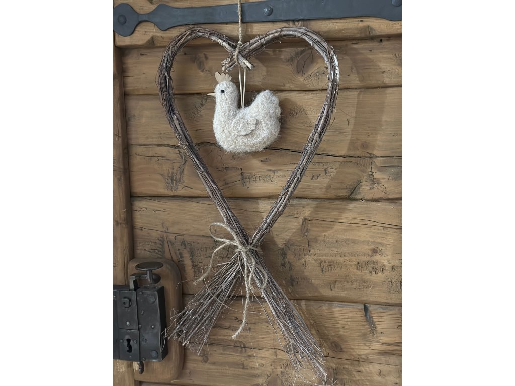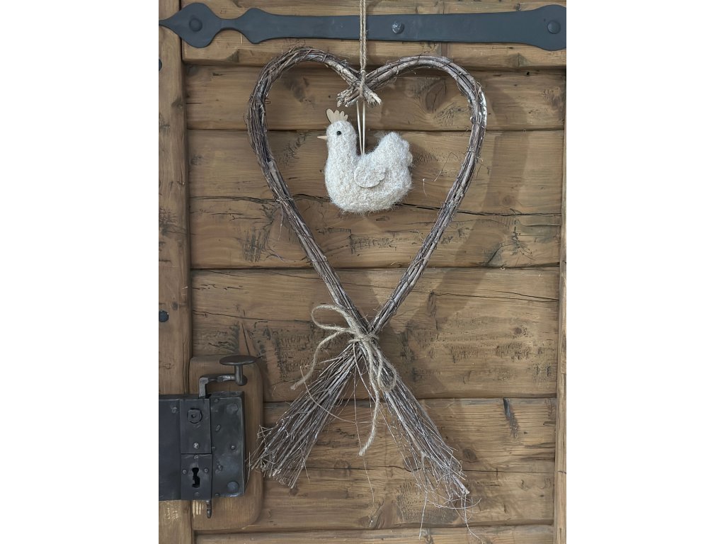 Krásné proutěné srdce k zavěšení, se stylovou filcovou přízdobou uprostřed. Ideální a nenáročná dekorace pro jarní období a po sundání přízdoby i pro celý rok. Rozměry: 33 x 60 cm.