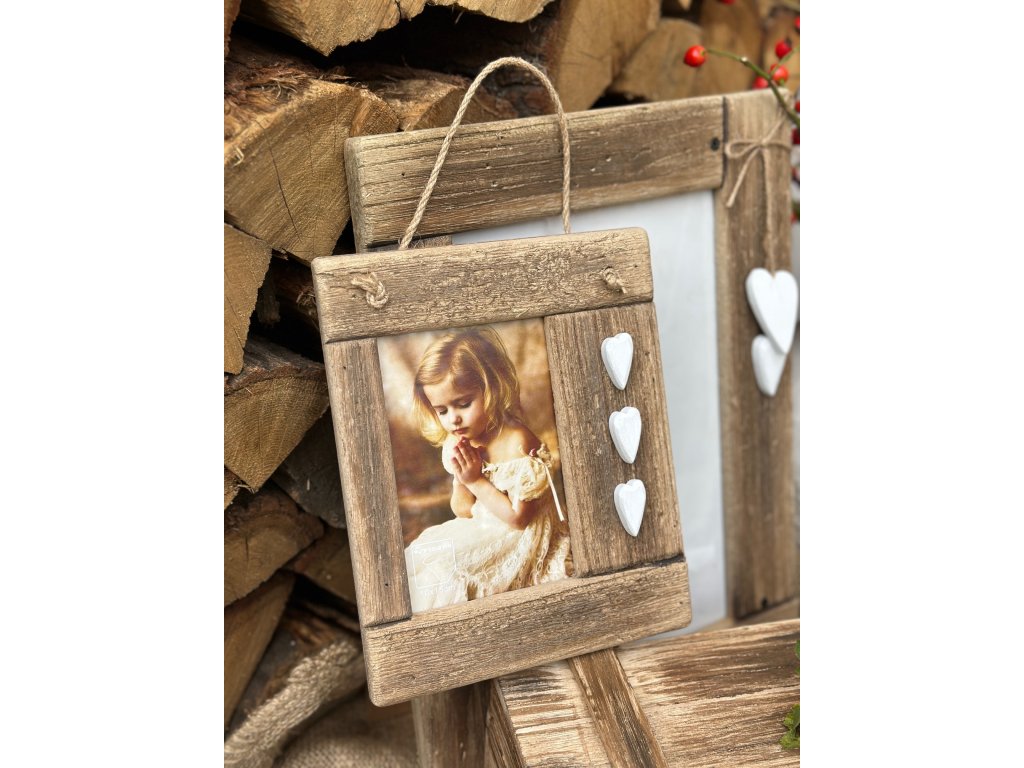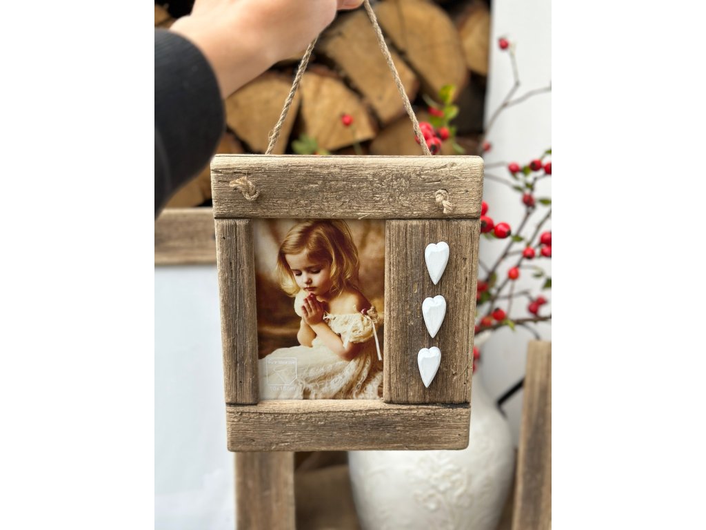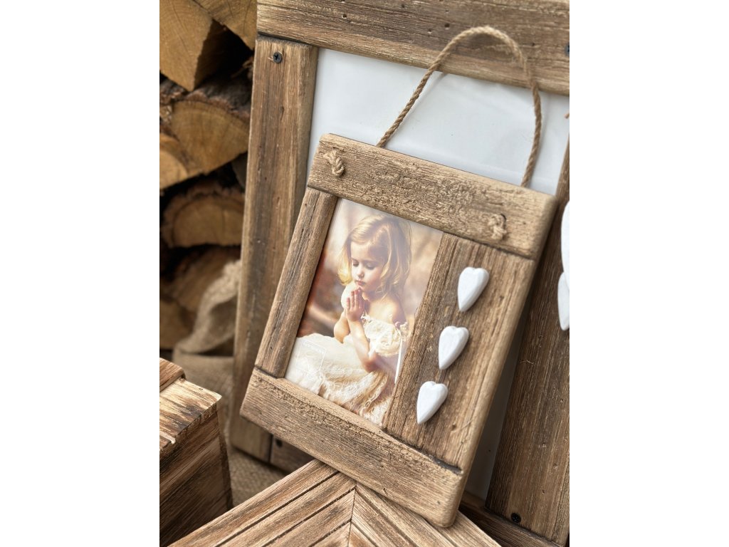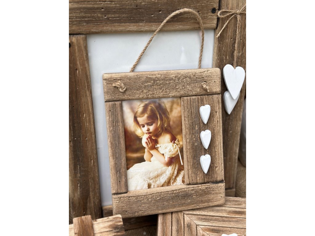 Kouzlo starého dřeva dodá všem obrázkům a fotografiím originální nádech. Díky přírodní provázku si obrázek můžete zavěsit na stěnu a mít tak své oblíbené fotky stále na očích. Velikost rámečku je 18x22 cm. Plocha na fotografii (vnitřní rozměr rámečku) je pro fotografii 10 x 15 cm.