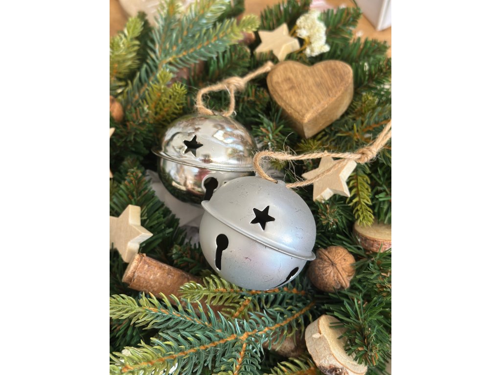› DEKORACE › Stříbrná rolnička na přírodním provázku
