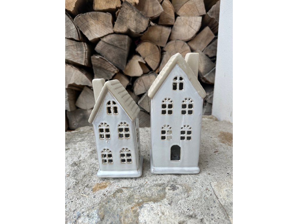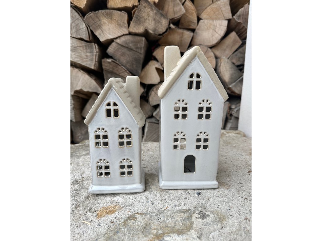 Okouzlující keramické domečky, které vytvoří hřejivou atmosféru v každém interiéru. Jsou na praktické LED světýlko a jejich neutrální vzhled a krásná světlá glazura zútulní každý domov. V nabídce jsou ve dvou velikostech a velmi pěkně vypadají v páru - větší a menší.