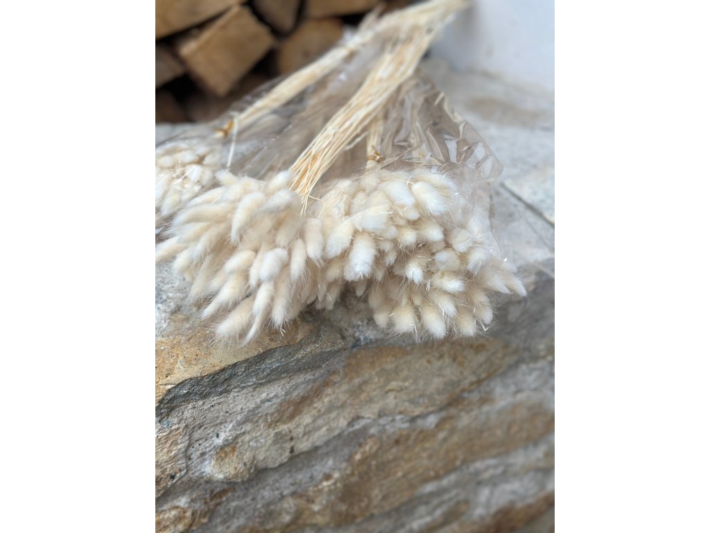 Svazek vysoce dekorativních "ocásků" (lagurus), které se hodí do vázy nebo do věnců a vydrží Vám dlouhé roky. Svazek je dlouhý 40 - 45 cm a obsahuje přibližně 50 stonků.