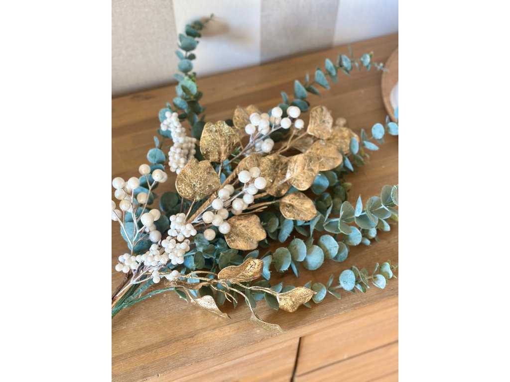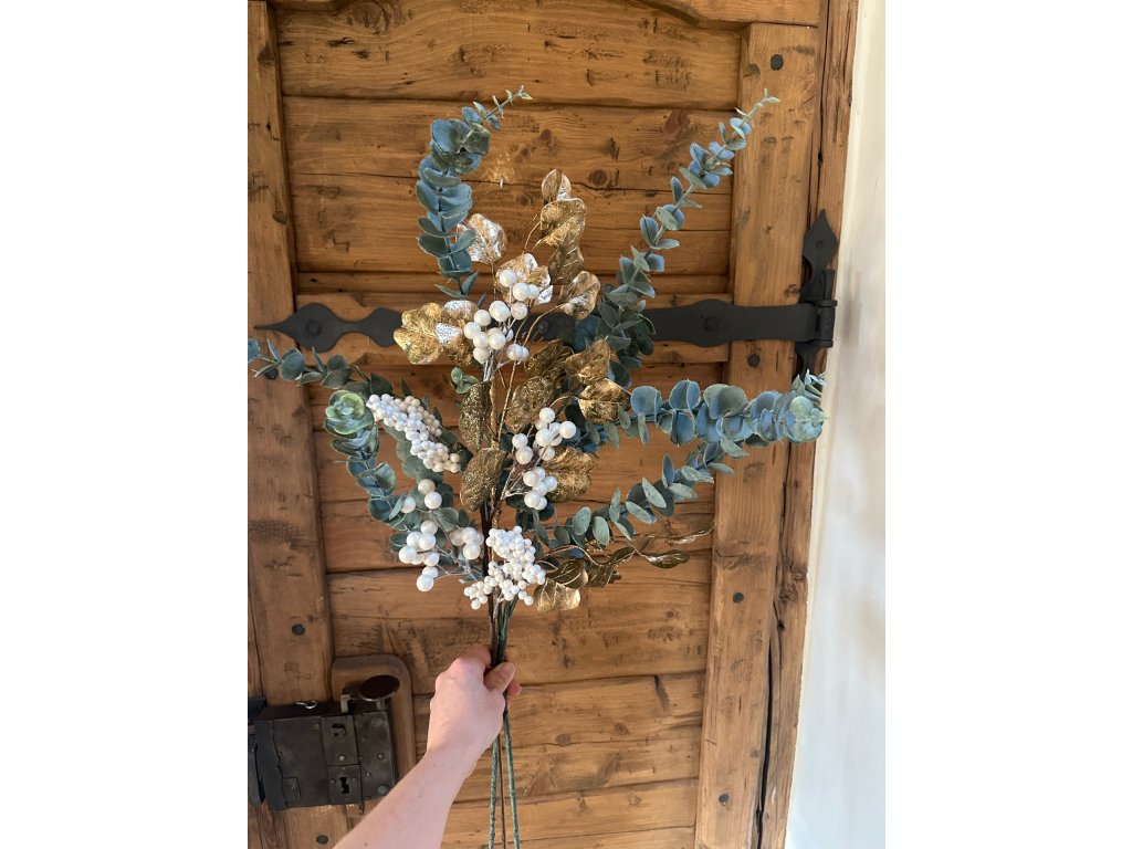 Věčná kytice, kterou můžete dát do vysoké vázy nebo po zkrácení i do nižší. Lze ji kombinovat i s přírodní chvojím, které jí dodá na přirozenosti. Obsahuje 2x zelený eukalyptus, 1x zlatý eukalyptus a 1x krásnou větvičku bílých bobulí. Délka kytice je cca 80 cm a lze libovolně zkrátit.