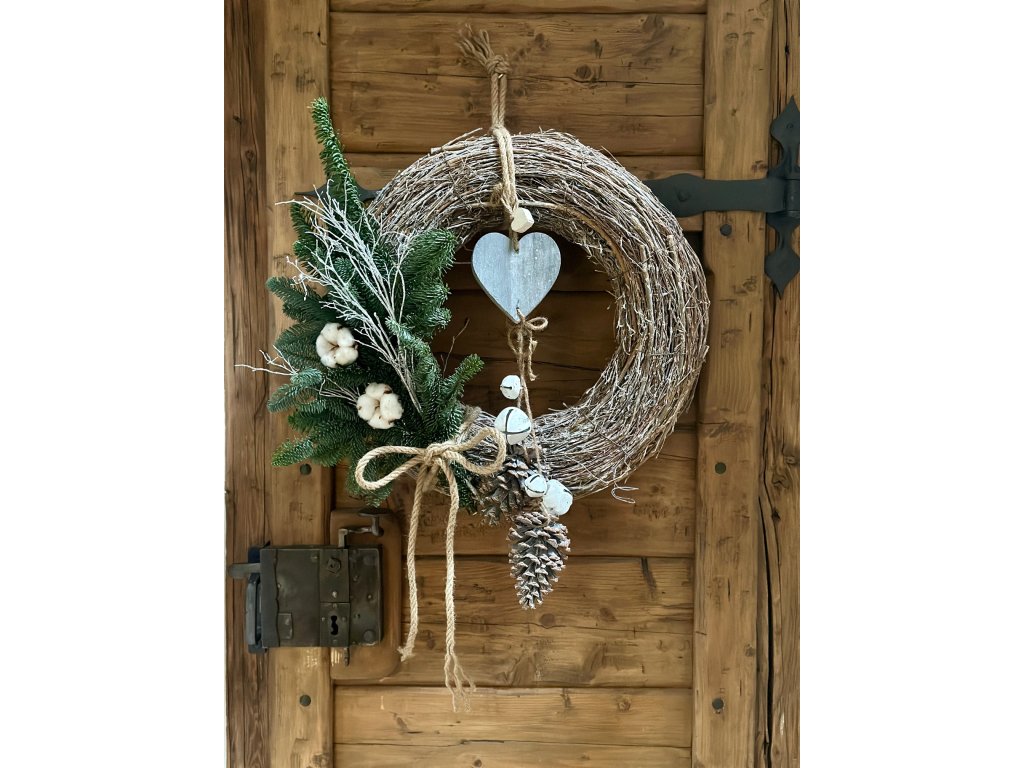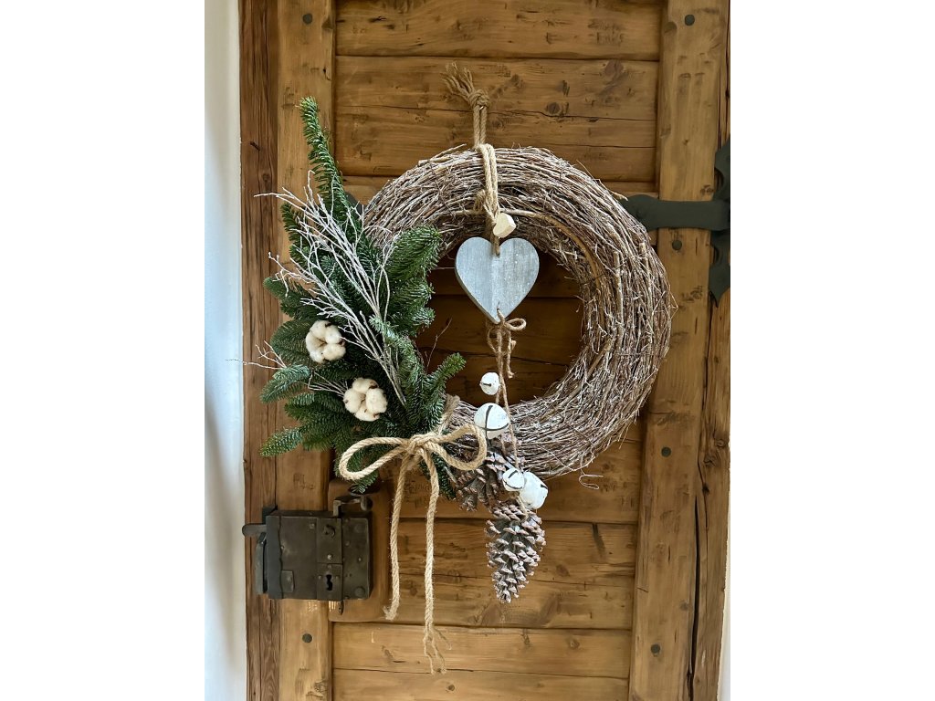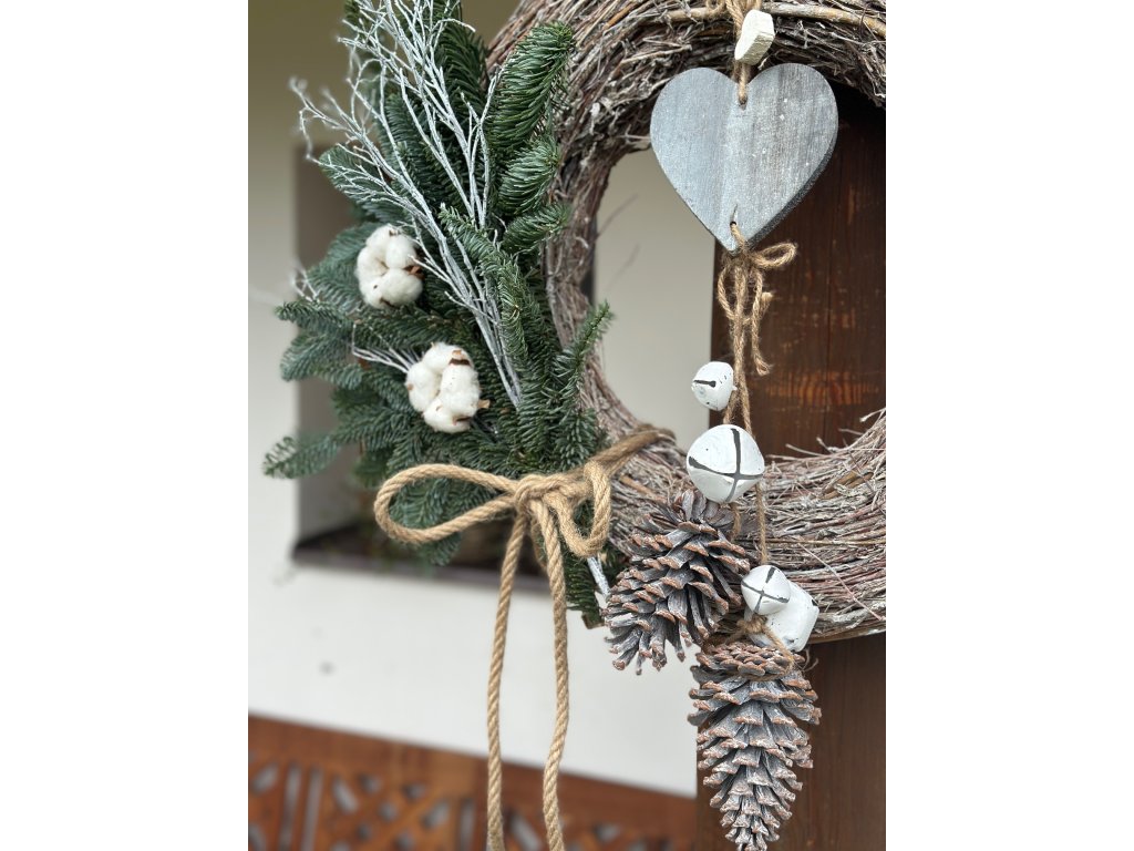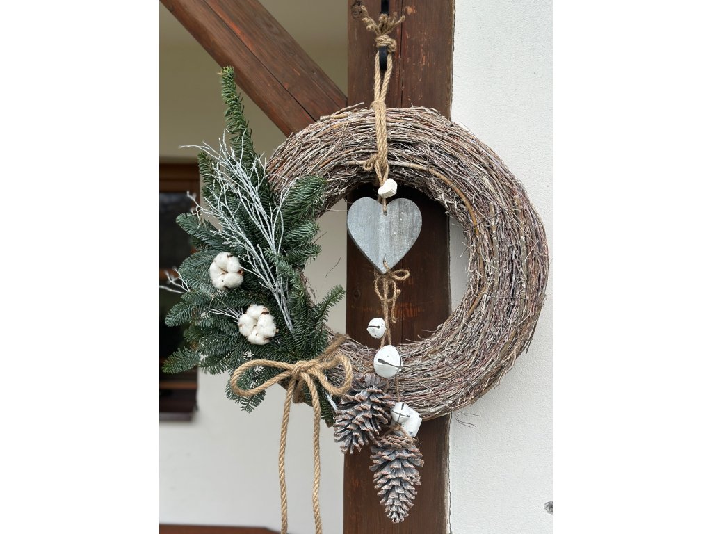› Z MOJÍ DÍLNY › Zimní věnec SRDCE s rolničkami - 50 cm
