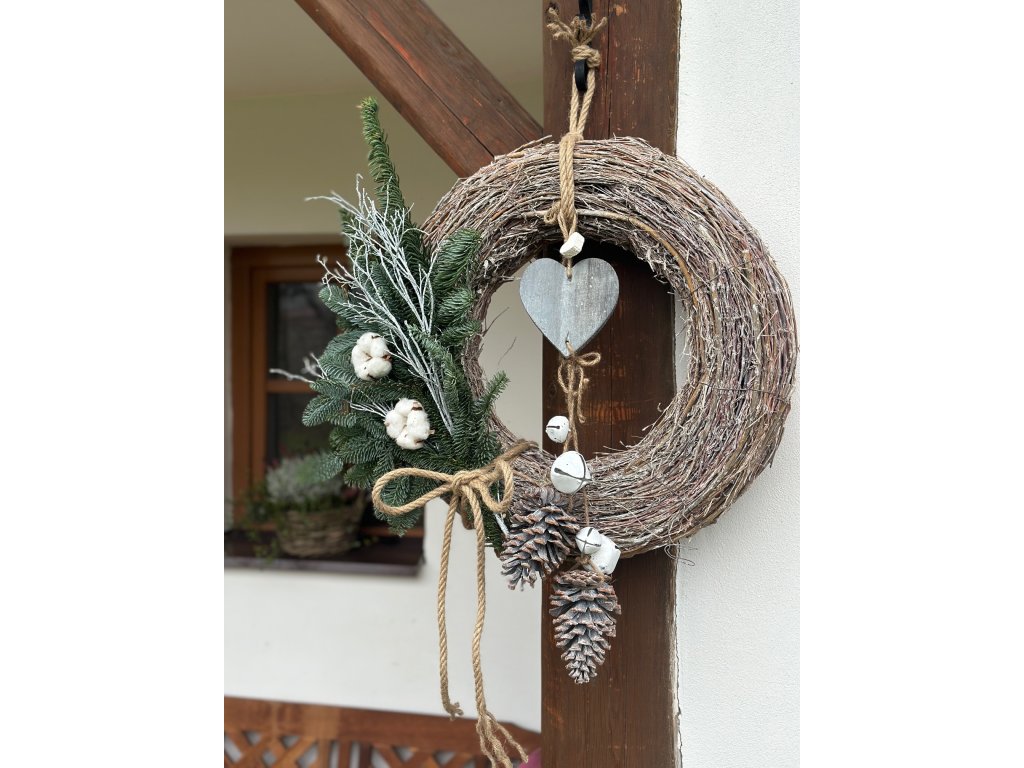Zimní věnec SRDCE s rolničkami - 50 cm